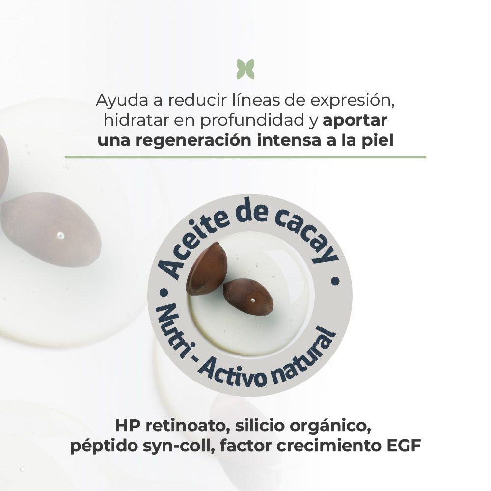 Sus activos principales Aceite de Cacai y Hp Retinoato