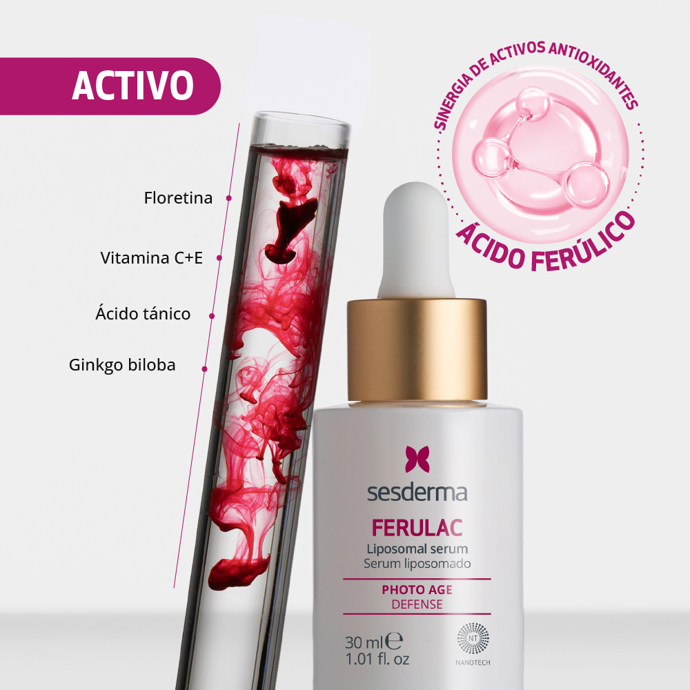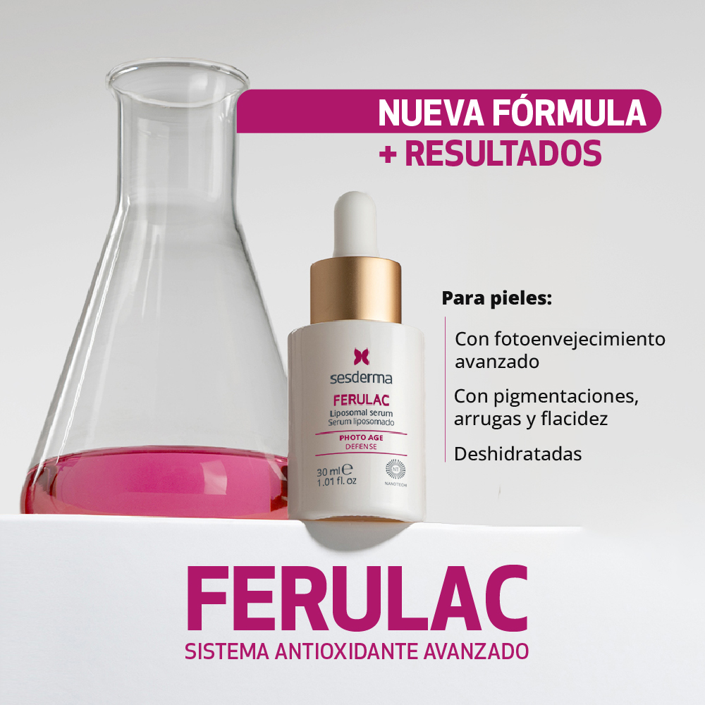 Ferulac Serum, sistema antioxidante avanzado con combinación única de ingredientes que previenen y tratan los signos del fotoenvejecimiento.
